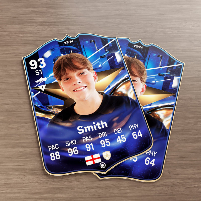 CardsPlug is home to the world’s favourite personalised football cards. Our easy football card builder lets you make a real life football card with your own name, photo, and skill ratings. With 100+ designs to choose from and some inspired by EA SPORTS FC 26 cards seen in EA FC 26, EA FC 25 and FC 24 as well as FIFA cards seen in games like FIFA 23 and FIFA 22.