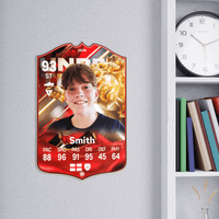 Our football card builder lets you choose between two different card materials. Our Standard cards are made of a ultra-strong variety of Foamex (not cardboard or foam!). This material has a lovely gloss finish and is also super durable. Our world-exclusive Metal football cards have a matte finish and are slightly heavier. Both look amazing and will last forever.