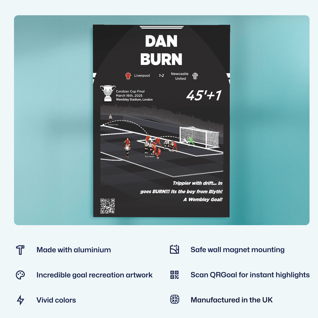 Match moments are the perfect way to forge unforgettable football moments onto a metal poster so they can be with you forever. All match moments include our unique QRGoal feature which lets you rewatch the moment at any time.