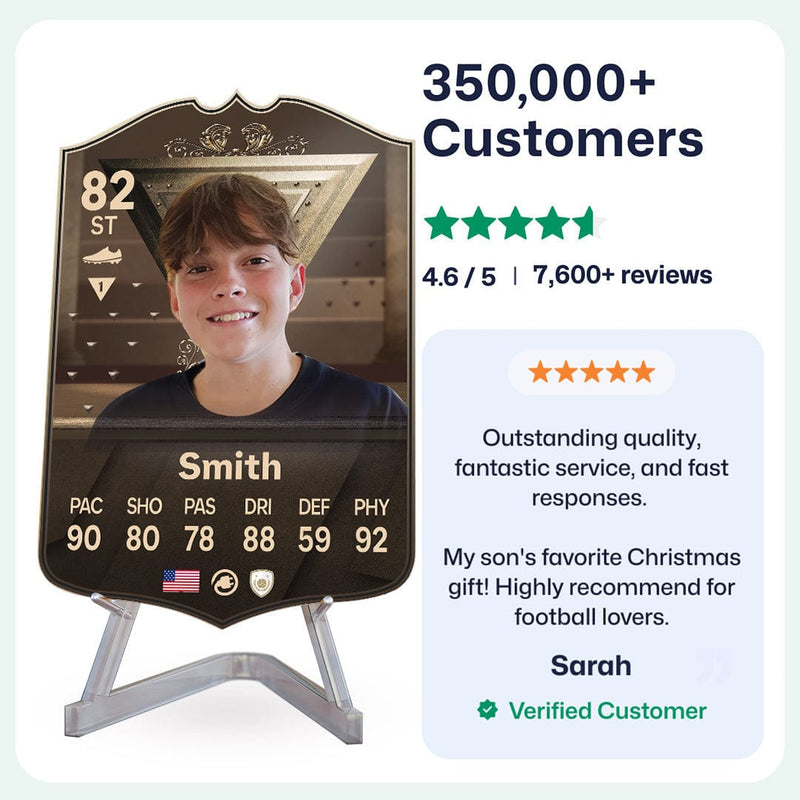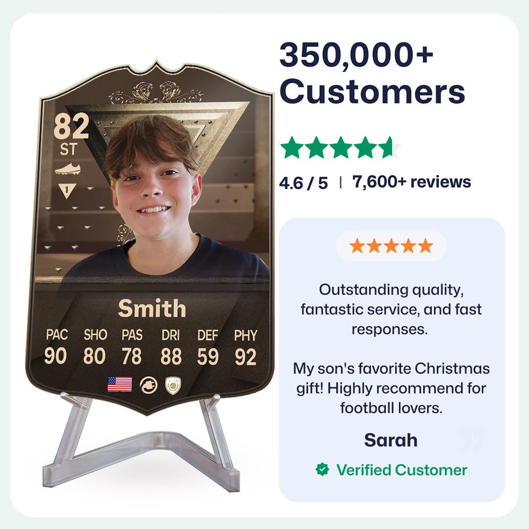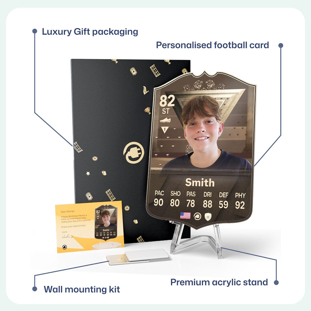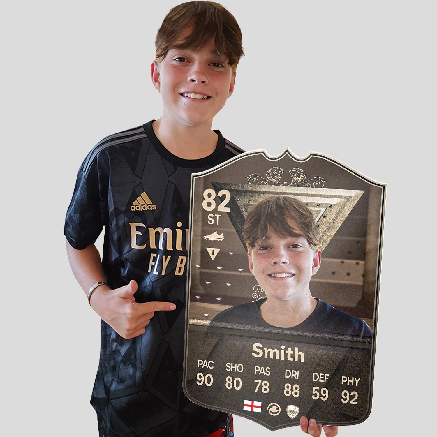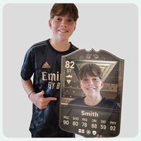 Yes! Our football card designers will remove the background from the photo you upload so it looks just like the football cards you might’ve seen games like EA FC 25, EA FC 24 or FIFA. We’ll also position the photo perfectly on the football card so it looks great. If there are any problems with the quality of your photo, we’ll reach out and let you know. Plus, our website's AI will remove the background on the image for visual purposes before purchase so you can see it without a background on the card.