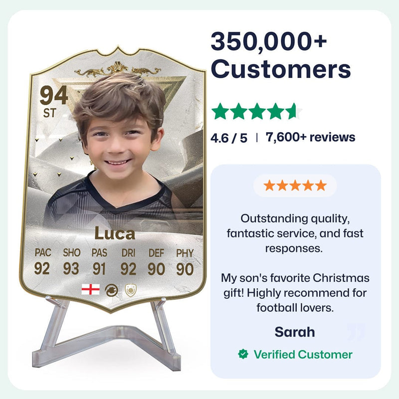 Yes! Our football card designers will remove the background from the photo you upload so it looks just like the football cards you might’ve seen games like EA FC 25, EA FC 24 or FIFA. We’ll also position the photo perfectly on the football card so it looks great. If there are any problems with the quality of your photo, we’ll reach out and let you know. Plus, our website's AI will remove the background on the image for visual purposes before purchase so you can see it without a background on the card.