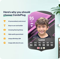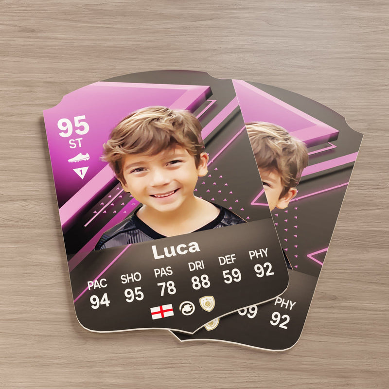 CardsPlug is home to the world’s favourite personalised football cards. Our easy football card builder lets you make a real life football card with your own name, photo, and skill ratings. With 100+ designs to choose from and some inspired by EA SPORTS FC 26 cards seen in EA FC 26, EA FC 25 and FC 24 as well as FIFA cards seen in games like FIFA 23 and FIFA 22.