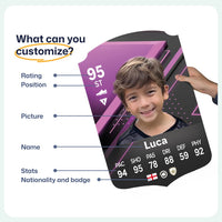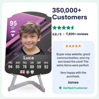 Yes! Our football card designers will remove the background from the photo you upload so it looks just like the football cards you might’ve seen games like EA FC 25, EA FC 24 or FIFA. We’ll also position the photo perfectly on the football card so it looks great. If there are any problems with the quality of your photo, we’ll reach out and let you know. Plus, our website's AI will remove the background on the image for visual purposes before purchase so you can see it without a background on the card.