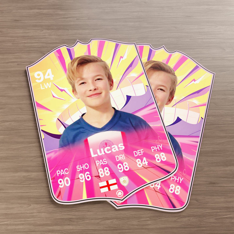 CardsPlug is home to the world’s favourite personalised football cards. Our easy football card builder lets you make a real life football card with your own name, photo, and skill ratings. With 100+ designs to choose from and some inspired by EA SPORTS FC 26 cards seen in EA FC 26, EA FC 25 and FC 24 as well as FIFA cards seen in games like FIFA 23 and FIFA 22.