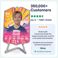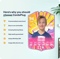 Yes! Our football card designers will remove the background from the photo you upload so it looks just like the football cards you might’ve seen games like EA FC 25, EA FC 24 or FIFA. We’ll also position the photo perfectly on the football card so it looks great. If there are any problems with the quality of your photo, we’ll reach out and let you know. Plus, our website's AI will remove the background on the image for visual purposes before purchase so you can see it without a background on the card.