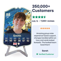 CardsPlug is home to the world’s favourite personalised football cards. Our easy football card builder lets you make a real life football card with your own name, photo, and skill ratings. With 100+ designs to choose from and some inspired by EA SPORTS FC 26 cards seen in EA FC 26, EA FC 25 and FC 24 as well as FIFA cards seen in games like FIFA 23 and FIFA 22.