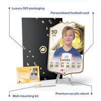 CardsPlug is home to the world’s favourite personalised football cards. Our easy football card builder lets you make a real life football card with your own name, photo, and skill ratings. With 100+ designs to choose from and some inspired by EA SPORTS FC 26 cards seen in EA FC 26, EA FC 25 and FC 24 as well as FIFA cards seen in games like FIFA 23 and FIFA 22.