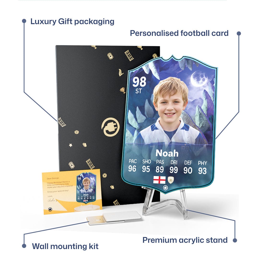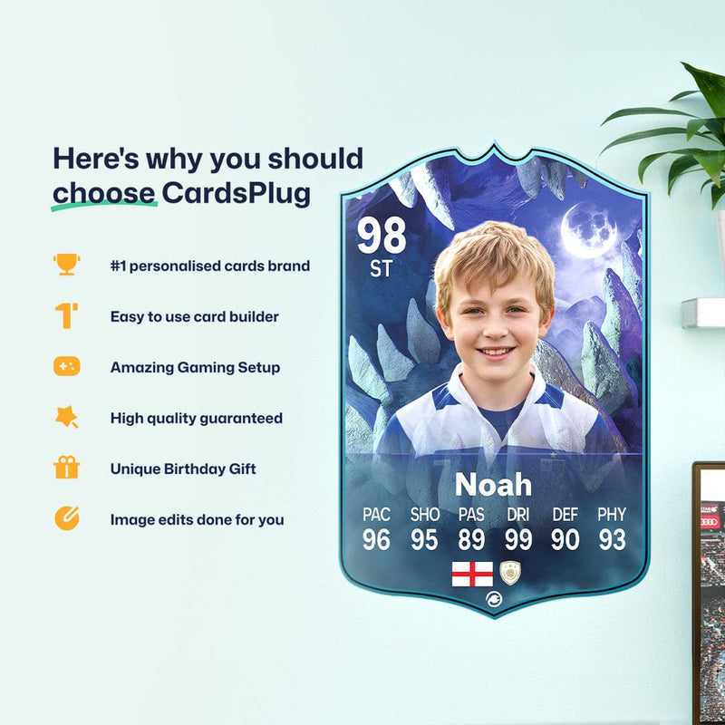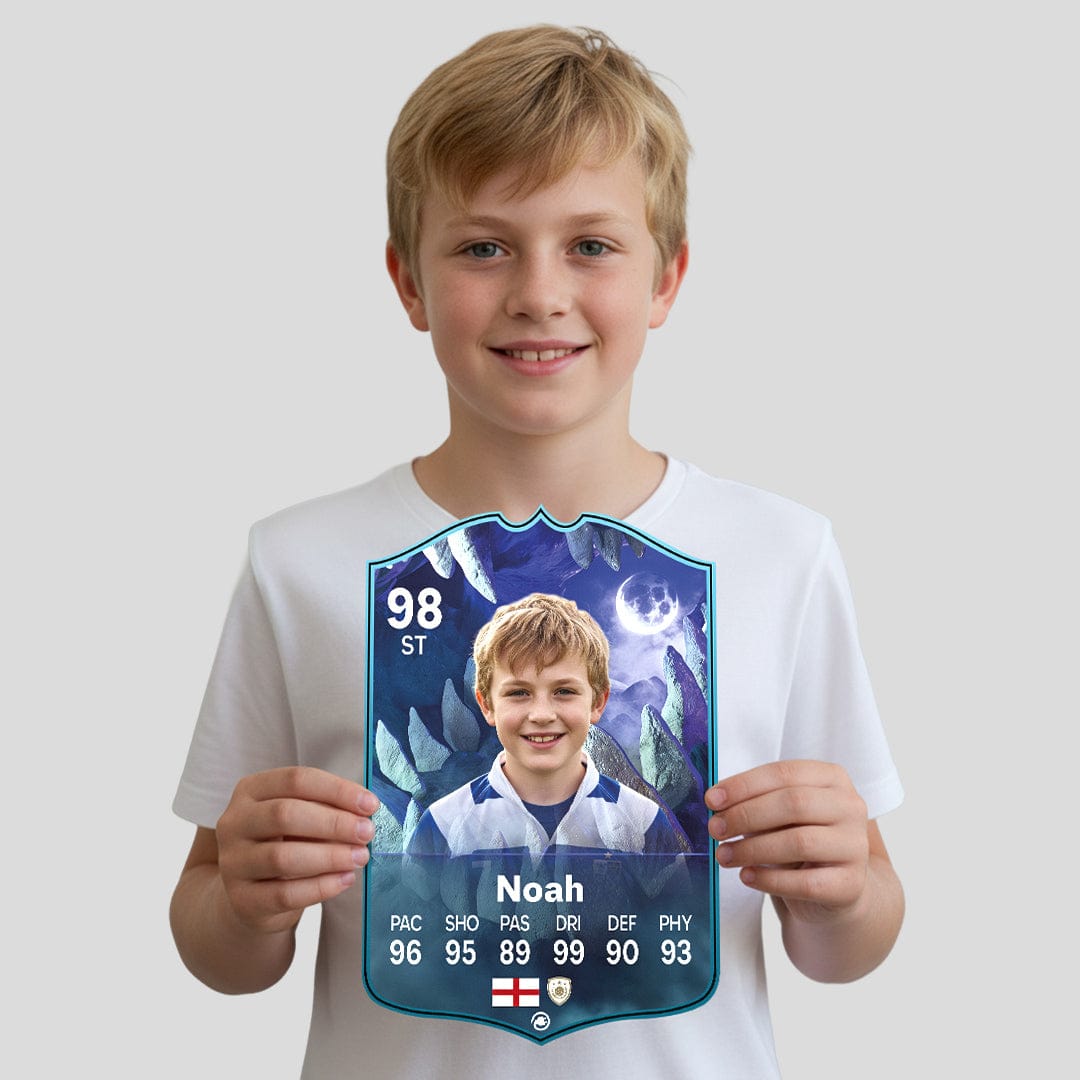 CardsPlug is home to the world’s favourite personalised football cards. Our easy football card builder lets you make a real life football card with your own name, photo, and skill ratings. With 100+ designs to choose from and some inspired by EA SPORTS FC 26 cards seen in EA FC 26, EA FC 25 and FC 24 as well as FIFA cards seen in games like FIFA 23 and FIFA 22.