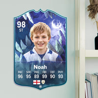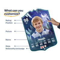 When it comes to personalising your card, the basic steps are to upload a photo and add a name to your card. Then you’ll add details like your player’s position and skill ratings out of 99 for each football skill shown on the card. Our online card builder makes this really easy. And if you aren’t a football card expert, don’t worry!