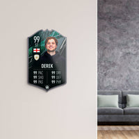 Our football card builder lets you choose between two different card materials. Our Standard cards are made of a ultra-strong variety of Foamex (not cardboard or foam!). This material has a lovely gloss finish and is also super durable. Our world-exclusive Metal football cards have a matte finish and are slightly heavier. Both look amazing and will last forever.