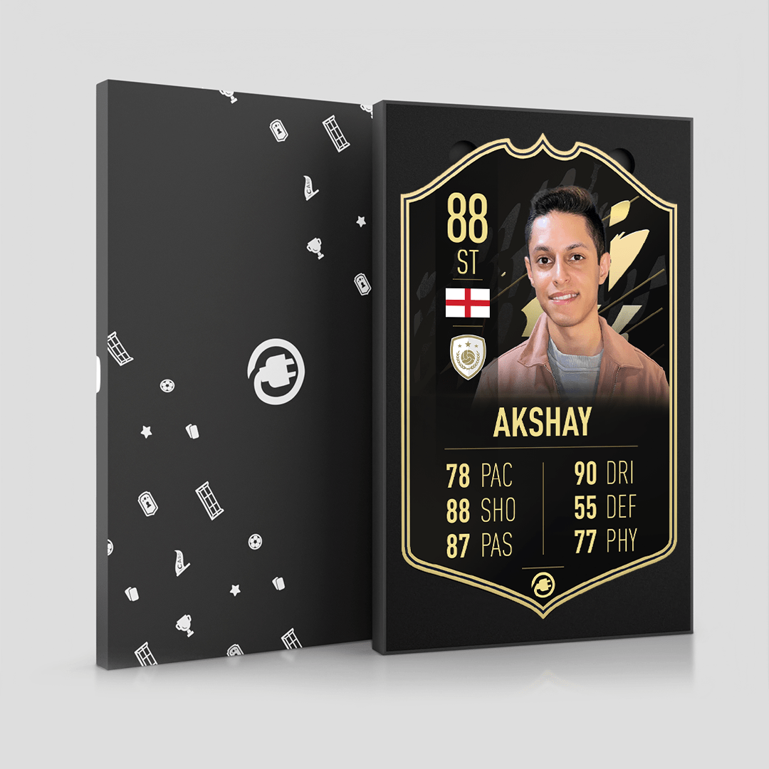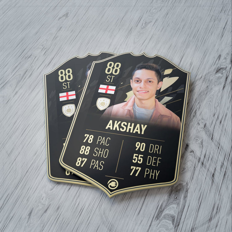 CardsPlug is home to the world’s favourite personalised football cards. Our easy football card builder lets you make a real life football card with your own name, photo, and skill ratings. With 100+ designs to choose from and some inspired by EA SPORTS FC 26 cards seen in EA FC 26, EA FC 25 and FC 24 as well as FIFA cards seen in games like FIFA 23 and FIFA 22.