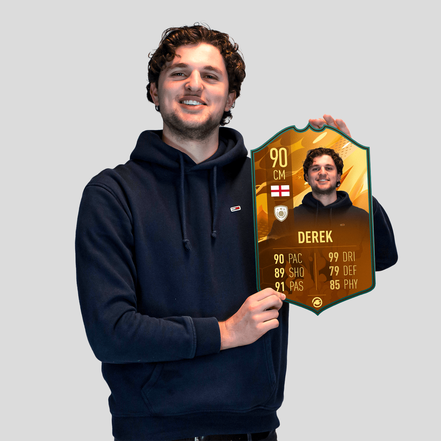 Yes! Our football card designers will remove the background from the photo you upload so it looks just like the football cards you might’ve seen games like EA FC 25, EA FC 24 or FIFA. We’ll also position the photo perfectly on the football card so it looks great. If there are any problems with the quality of your photo, we’ll reach out and let you know. Plus, our website's AI will remove the background on the image for visual purposes before purchase so you can see it without a background on the card.