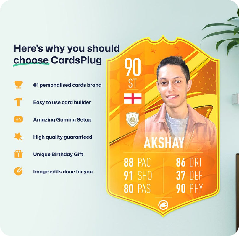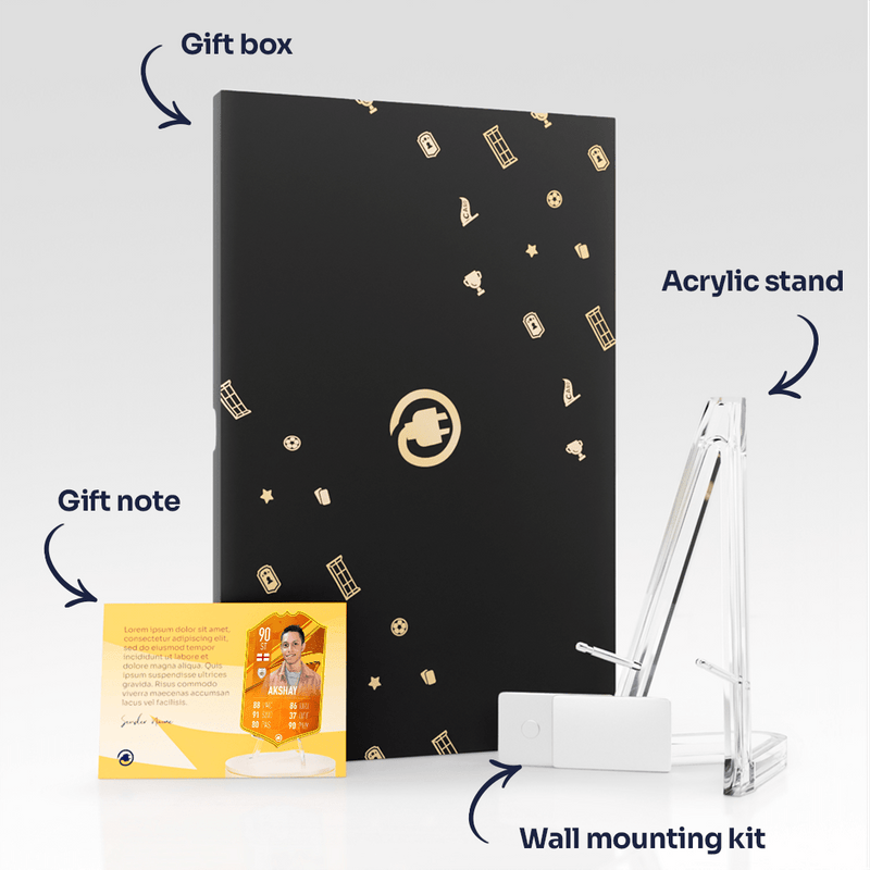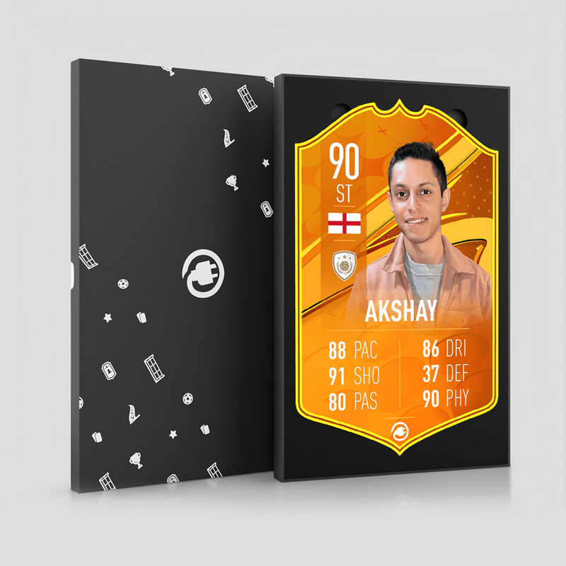 CardsPlug is home to the world’s favourite personalised football cards. Our easy football card builder lets you make a real life football card with your own name, photo, and skill ratings. With 100+ designs to choose from and some inspired by EA SPORTS FC 26 cards seen in EA FC 26, EA FC 25 and FC 24 as well as FIFA cards seen in games like FIFA 23 and FIFA 22.