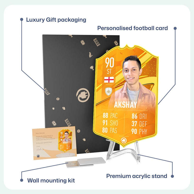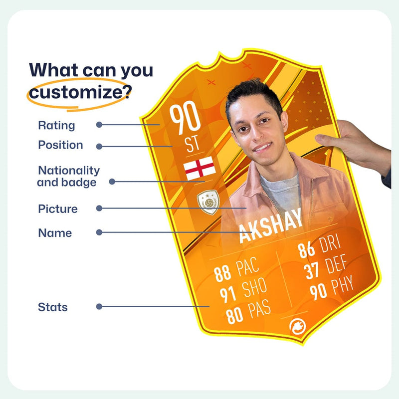Yes! Our football card designers will remove the background from the photo you upload so it looks just like the football cards you might’ve seen games like EA FC 25, EA FC 24 or FIFA. We’ll also position the photo perfectly on the football card so it looks great. If there are any problems with the quality of your photo, we’ll reach out and let you know. Plus, our website's AI will remove the background on the image for visual purposes before purchase so you can see it without a background on the card.