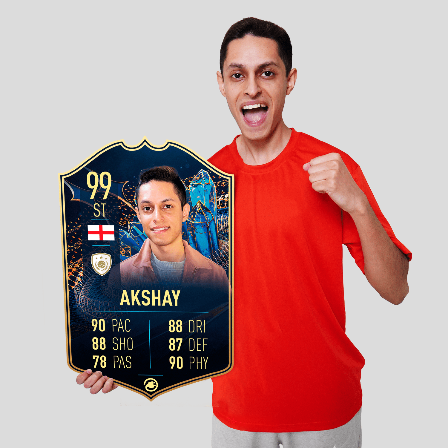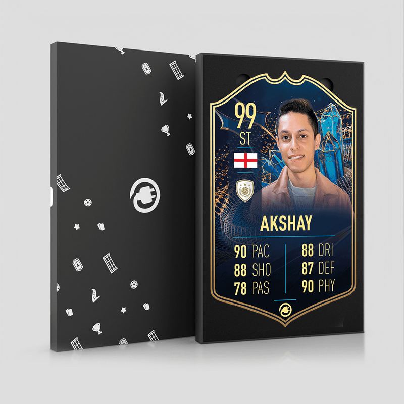 CardsPlug is home to the world’s favourite personalised football cards. Our easy football card builder lets you make a real life football card with your own name, photo, and skill ratings. With 100+ designs to choose from and some inspired by EA SPORTS FC 26 cards seen in EA FC 26, EA FC 25 and FC 24 as well as FIFA cards seen in games like FIFA 23 and FIFA 22.