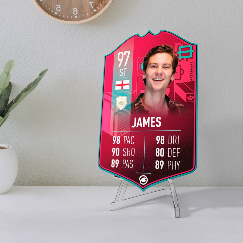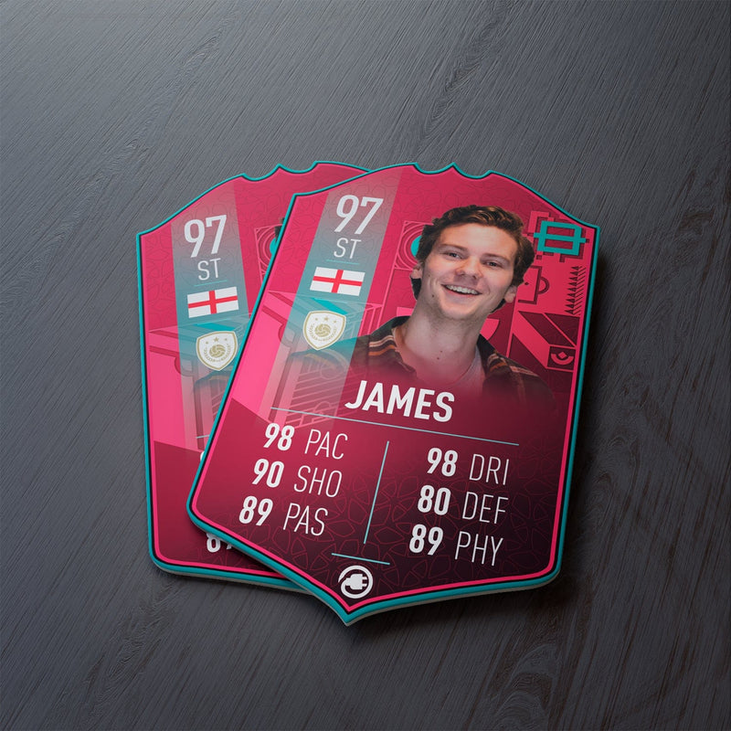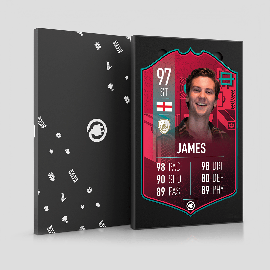 When it comes to personalising your card, the basic steps are to upload a photo and add a name to your card. Then you’ll add details like your player’s position and skill ratings out of 99 for each football skill shown on the card. Our online card builder makes this really easy. And if you aren’t a football card expert, don’t worry!